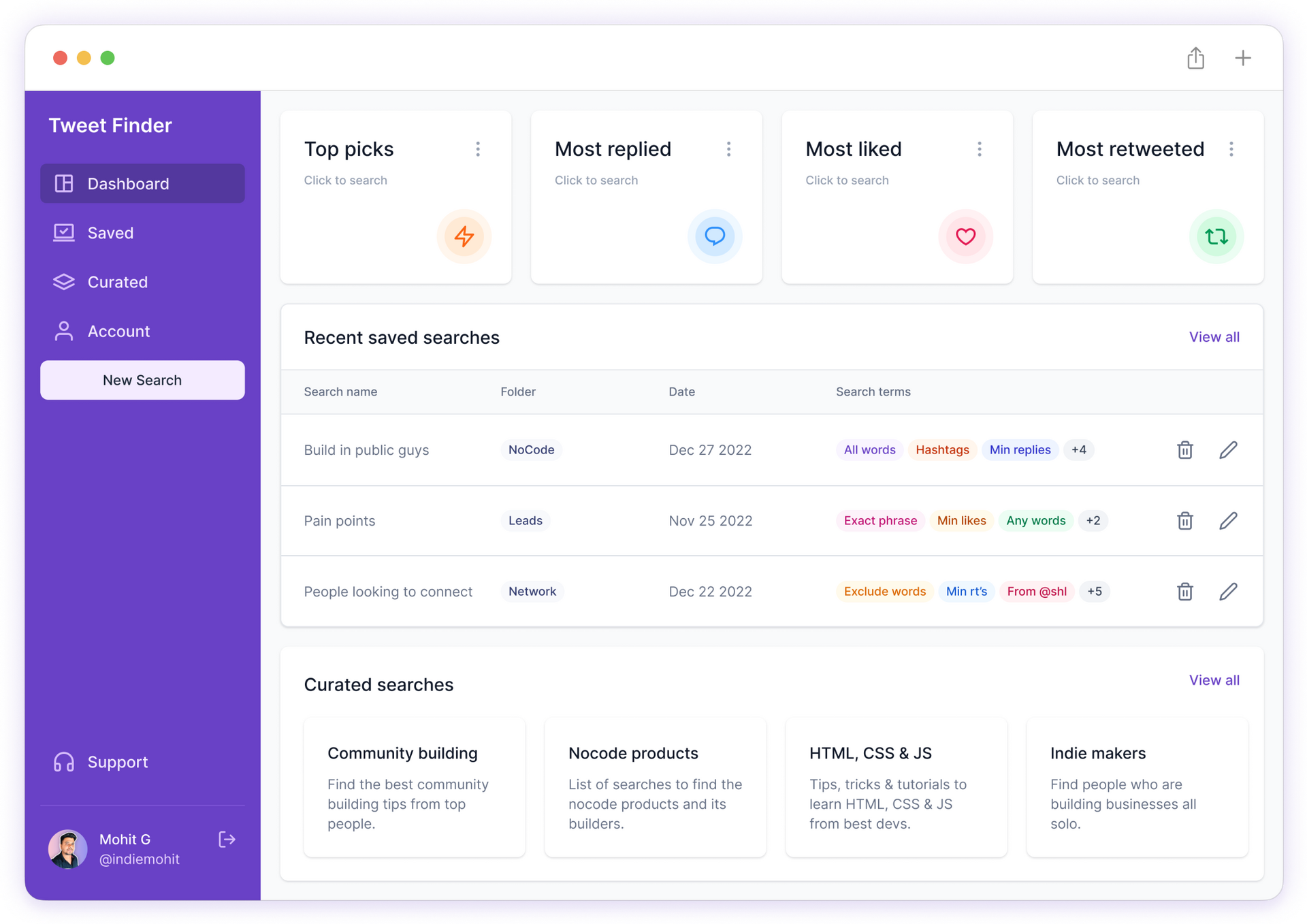 With a single click, you can access top picks, most replied, most liked & most retweeted tweets from all your followings.